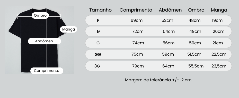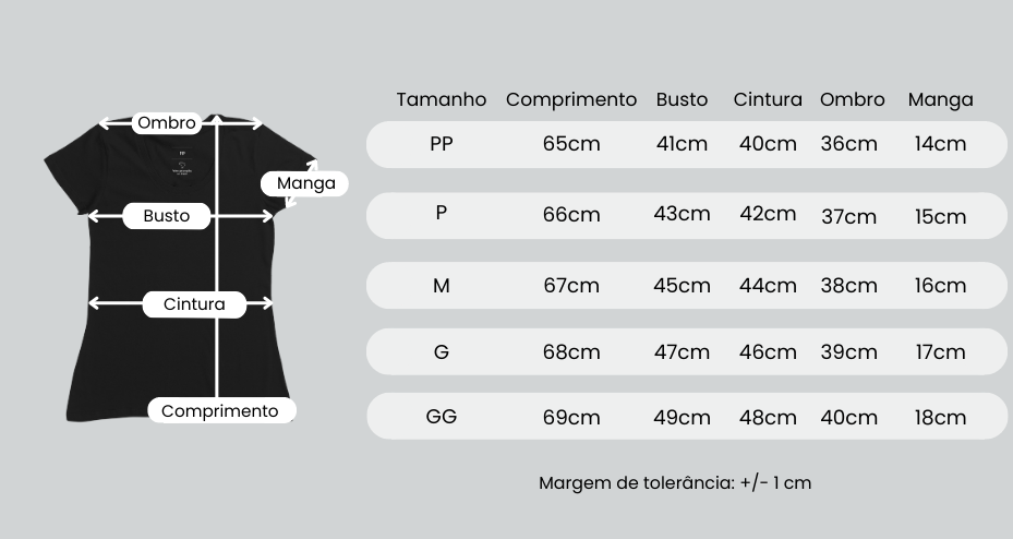 Tabela de Medidas: